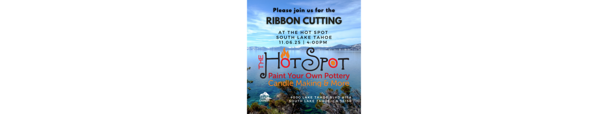Join the Tahoe Chamber in celebrating the grand opening of The Hot Spot South Lake Tahoe—a creative haven for all ages! Explore this fun, hands-on art studio offering paint-your-own pottery, candle making, slime crafting, and more. Guests can enjoy light refreshments, create small pottery or candle pieces, and enter a raffle for a 15% lifetime membership card.